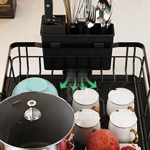 - Practical Design:The bottom of the dish rack has a water receiving tray and a drainage pan with a drain pipe, ensuring that water from wet dishes does not accumulate on your countertop. With its stylish and modern design, this dish rack is not only practical but also adds a touch of elegance to any kitchen decor