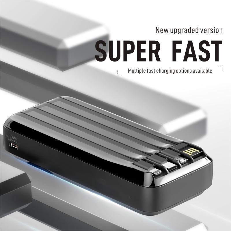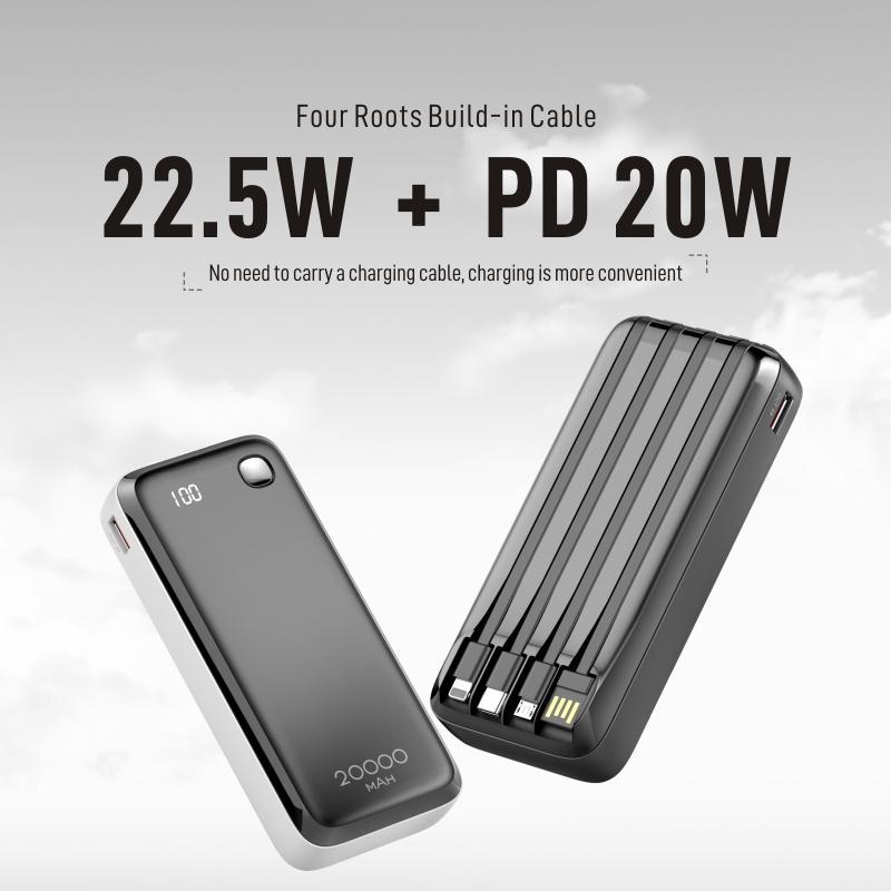 20W USB C Power Bank 20000Mah for Smartphone, Multi-Function Cellphone Charger Built-In 3 Counts Data Cable, Portable Charging Tool for Home & Travel, Universal Digital Display Mobile Charger Devices Compatible with Iphone Samsung Pixel LG Moto Ipad