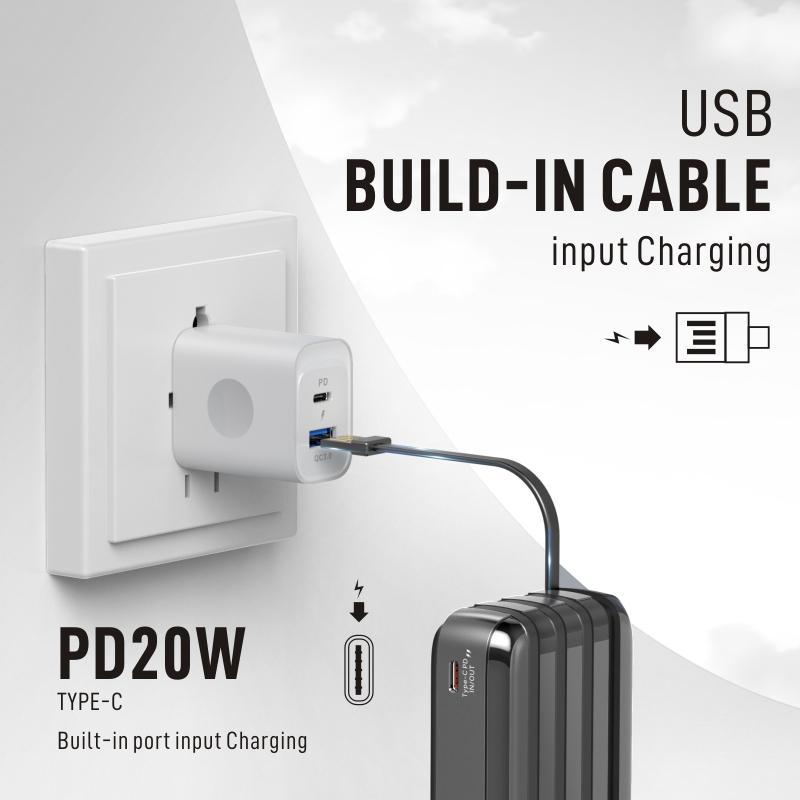 - 【Built-in 3pcs Data Cable】: Saves the hassle of carrying extra cables.