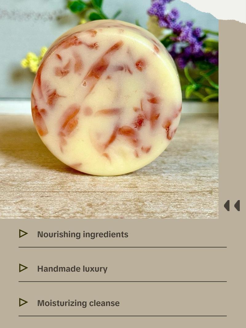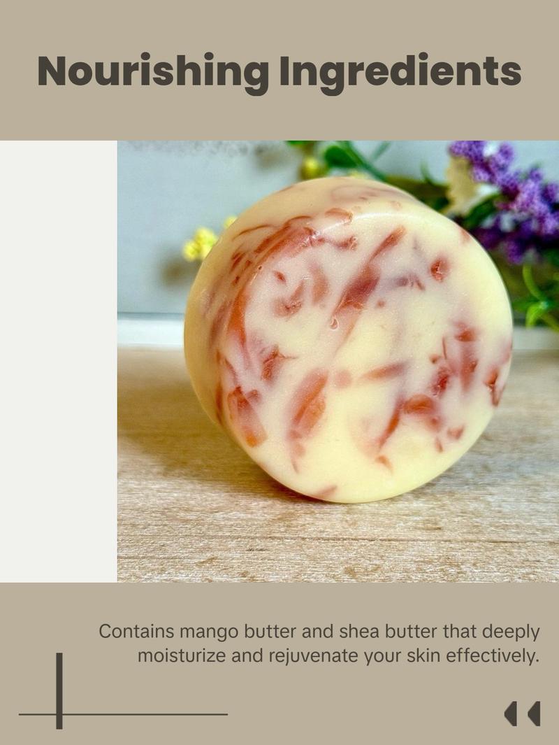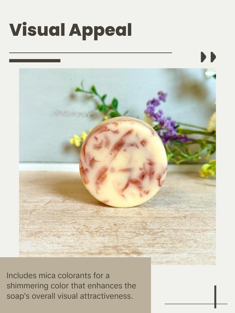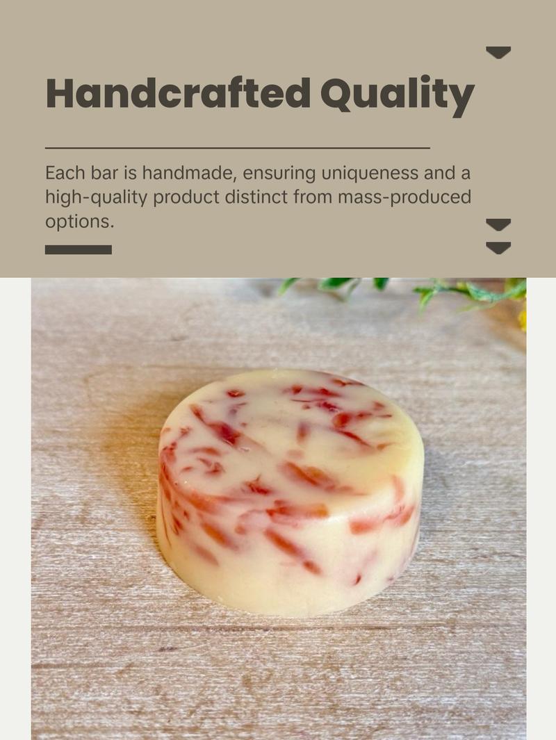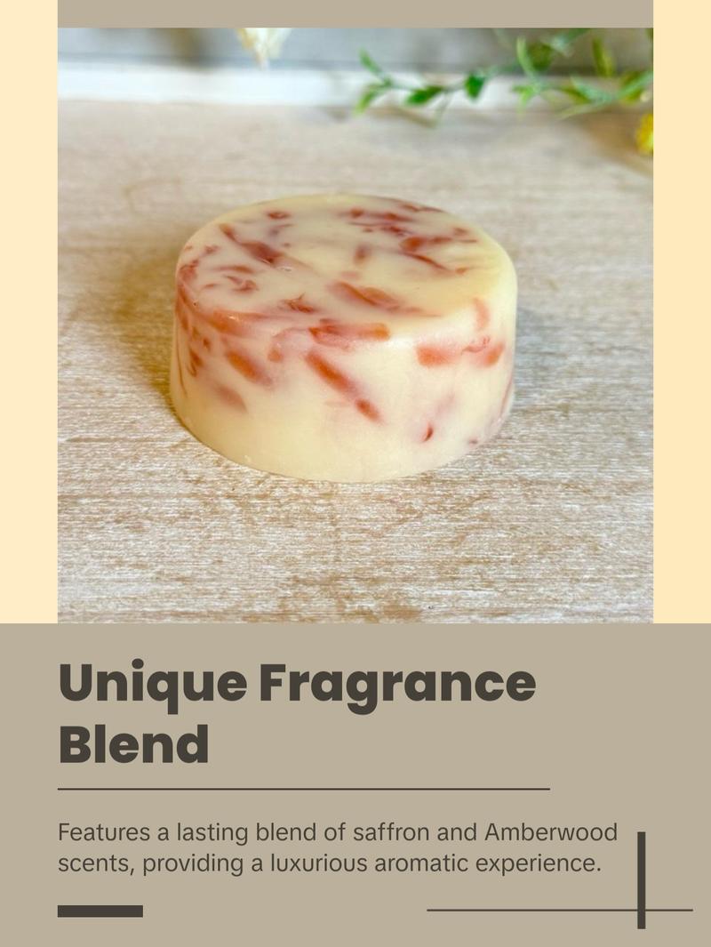 Indulge in the luxurious blend of saffron and Amberwood with our Amber Rouge Soap Bar. This exquisite soap combines rich, exotic scents with nourishing ingredients, creating a truly unique and pampering experience. Treat yourself or a loved one to the exotic, nourishing benefits of our Amber Rouge Soap Bar. Perfect for daily use or as a special gift! Key Ingredients: Glycerin: Provides a gentle, moisturizing cleanse. Mango Butter: Rich in vitamins A and E, it nourishes and rejuvenates your skin. Shea Butter: Known for its deep moisturizing properties, it leaves your skin feeling soft and smooth. Cocoa Butter: Adds a creamy texture and helps to lock in moisture. Fragrance Oil: Infuses the soap with a long-lasting, delightful blend of saffron and Amberwood scents. Mica Colorants: Adds a beautiful, shimmering color to the soap, enhancing its visual appeal. Features: Weight: 4 oz Design: Elegant marbled appearance, perfect for any bathroom decor. Skin Type: Suitable for all skin types, especially dry and sensitive skin. Handcrafted: Each bar is lovingly handmade, ensuring a unique and high-quality product.