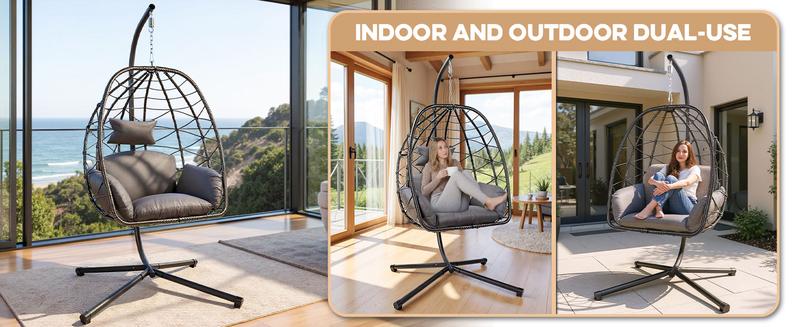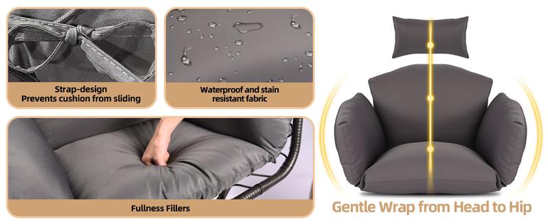 - All-inclusive Set: Comes with cushion, chains, and stand (if applicable)—ready to hang!