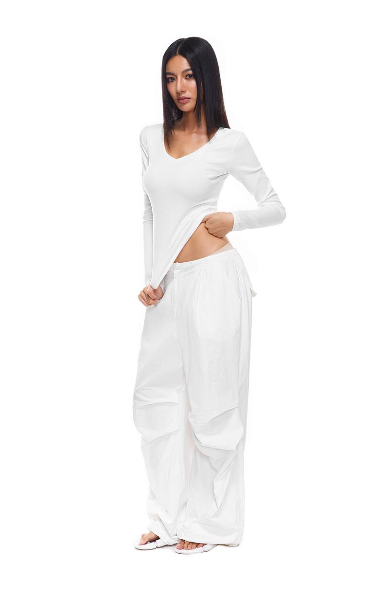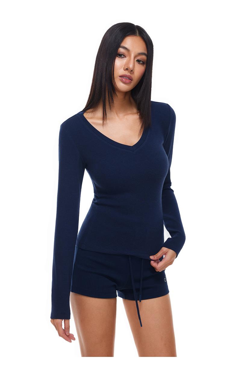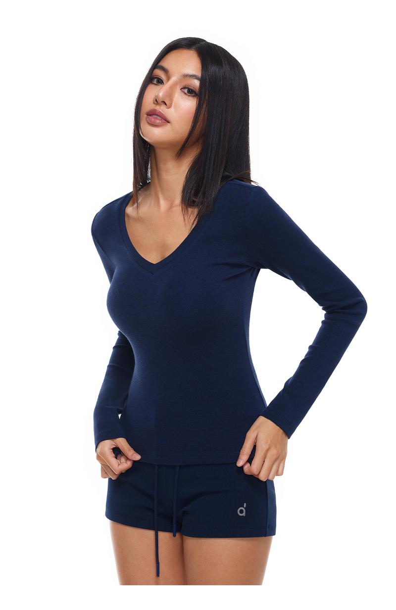 This top is a must-have for your autumn collection. Its solid color and V-neck design make it versatile for layering. Experience comfort and style with every wear.