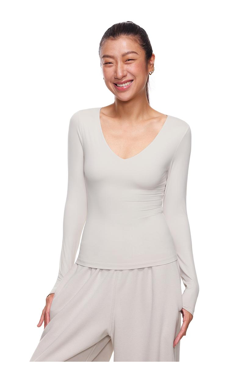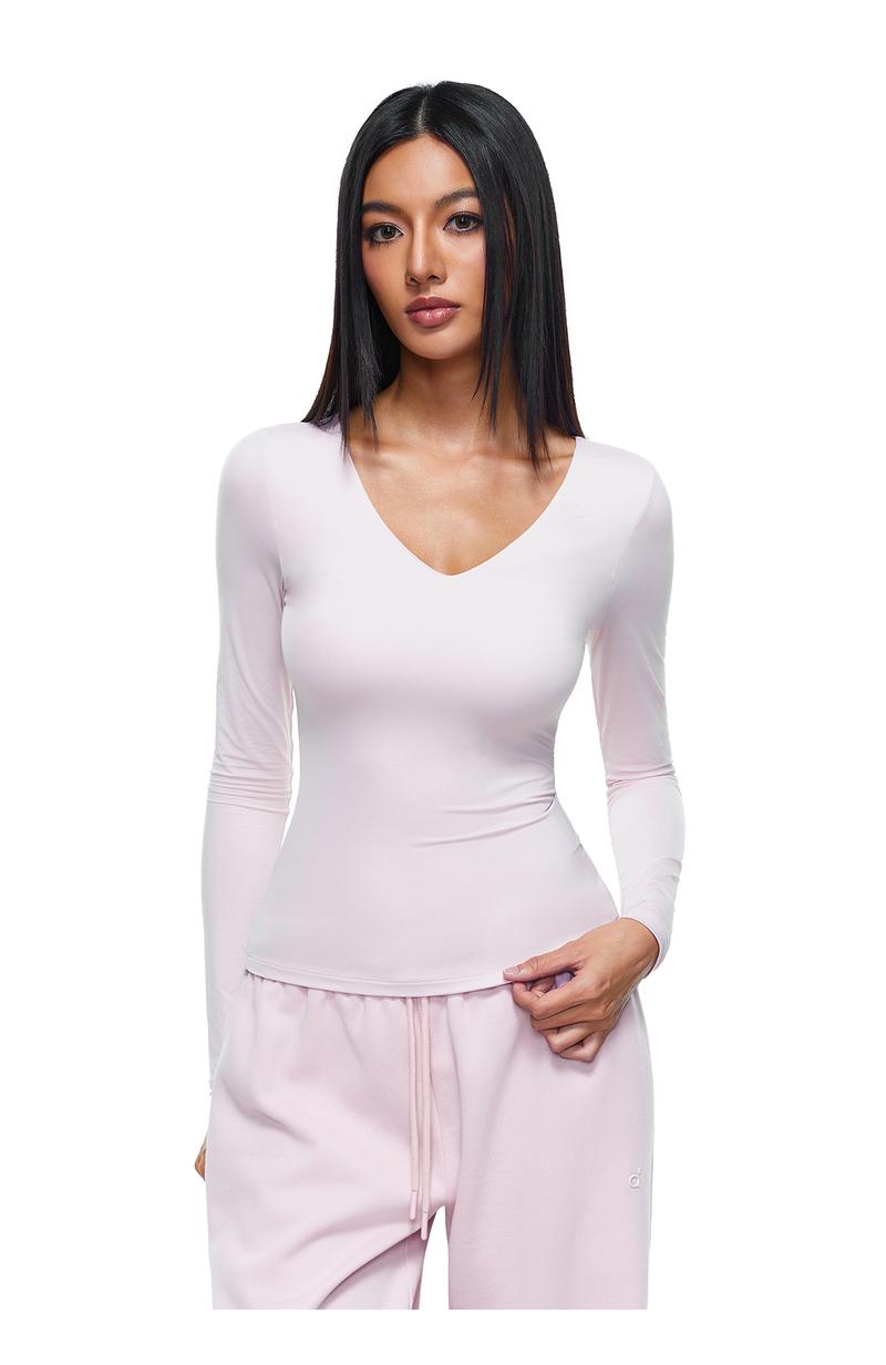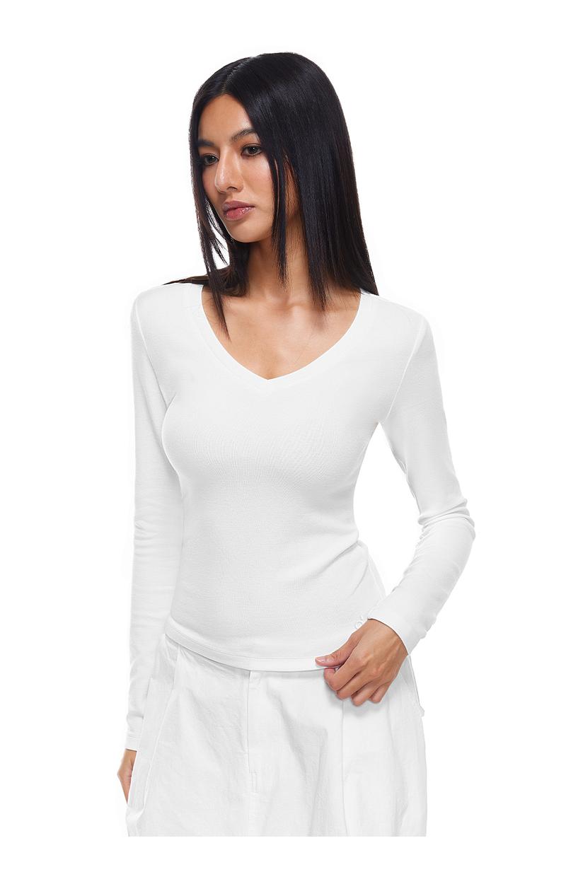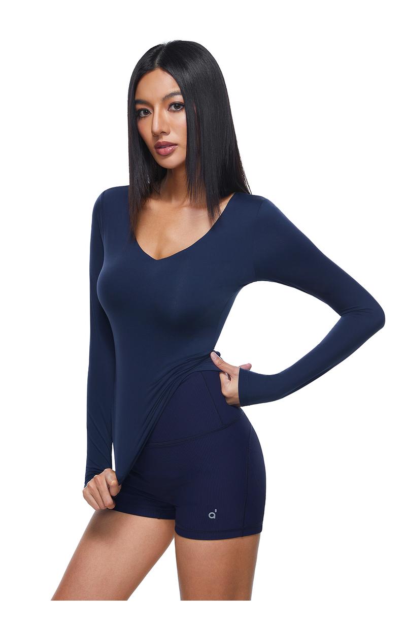 FDR Women'S Solid Color V-Neck Double-Lined Long Sleeve Tee | Lightweight Breathable Stretch | Slim-Fit Layering Essential for Fall Workouts & Everyday Womenswear Top Style Basic