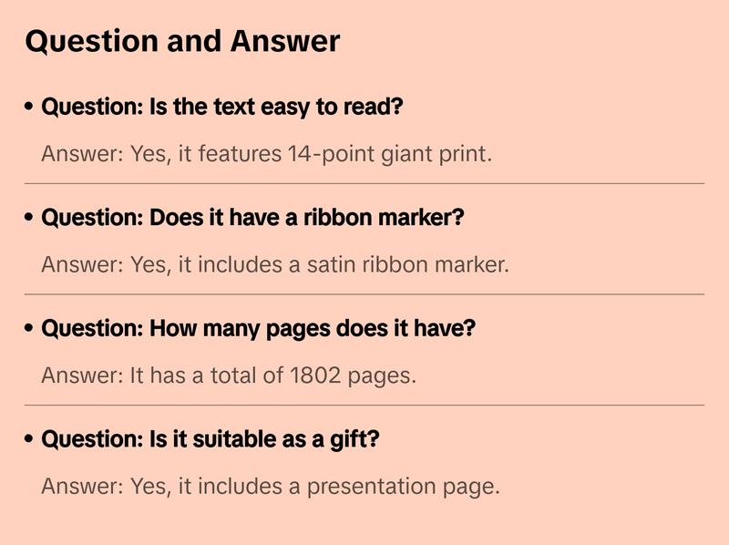 This edition uses the original KJV Bible's beautiful poetic language. The KJV text has stood the test of time and is still considered one of the most accurate translations 400 years after it was first printed. You will see this rich heritage reflected in the spelling and grammatical structure and note that it deviates from their modern usage.