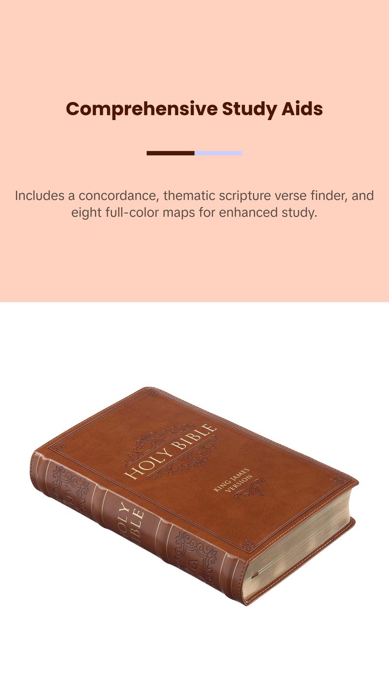 The Saddle Tan Faux Leather Giant Print Standard-size King James Version Bible with Thumb Index is a classic edition of the King James Version of the Bible.