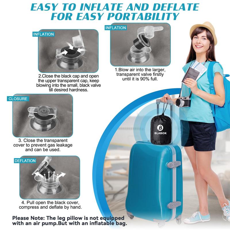 【Portable & Easy to Store】 This inflatable leg pillow is easy to inflate/deflate and measures 24.8 × 19.7 × 9.4 inches when in use—large enough to fully support your legs without slipping. After deflation, it folds down to just 6.6 × 4.7 × 3.1 inches, making it compact and travel-friendly. Great for use at home or as a thoughtful gift for loved ones.