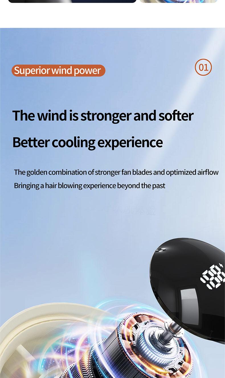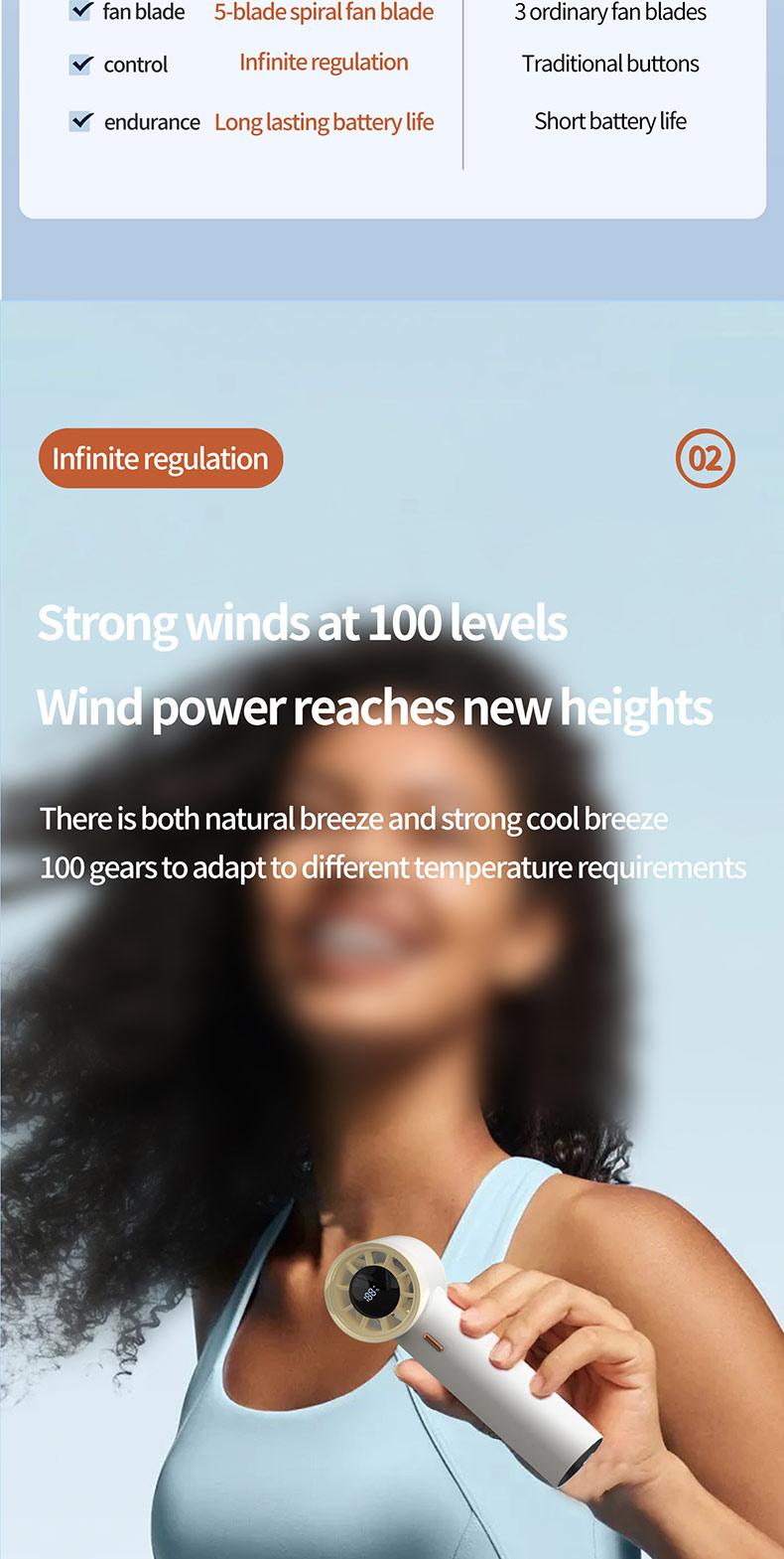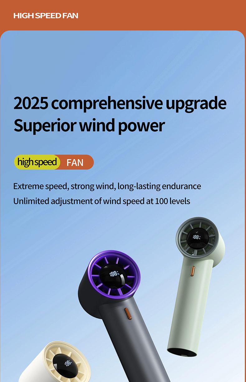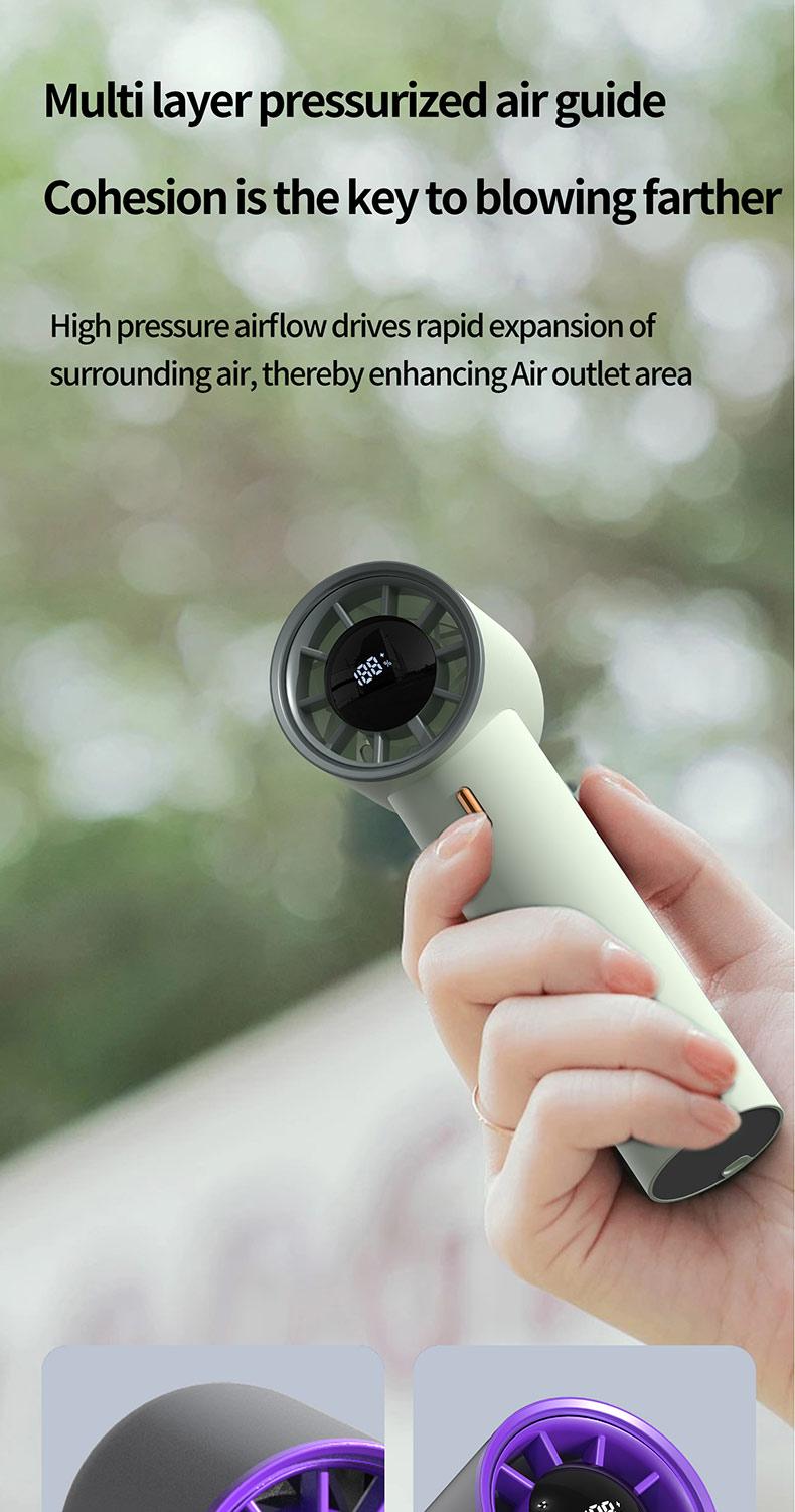 5 - Gear Wind for Custom Comfort Adjust to your perfect breeze with 5 distinct wind gears. Whether you need a gentle whisper or a powerful gust, this fan delivers. The LED display ensures you always know your gear level and battery status at a glance.